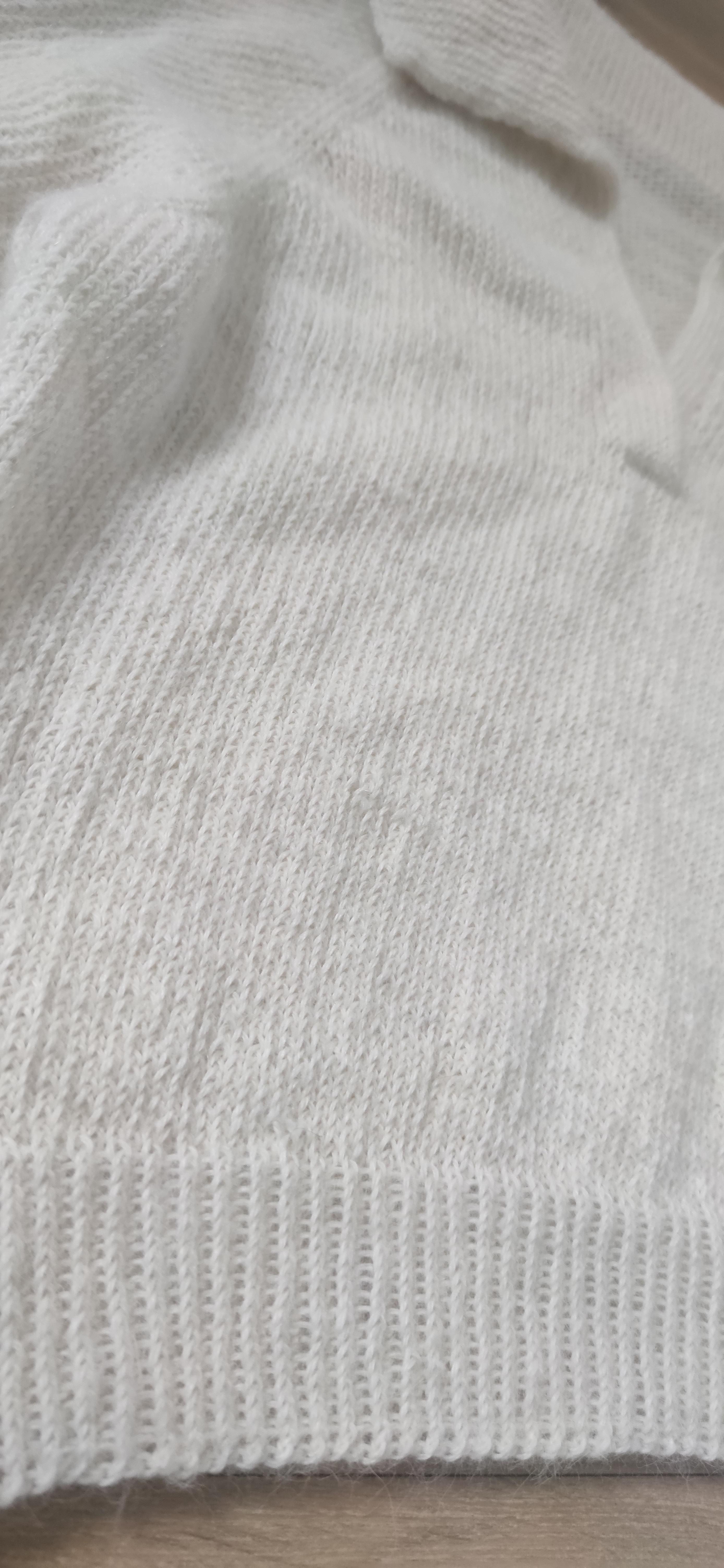 Regarding the choice of the model, I selected the Elisabeth blouse from PetiteKnit. It aligned with the material (fine alpaca yarn), color, and the available yardage.