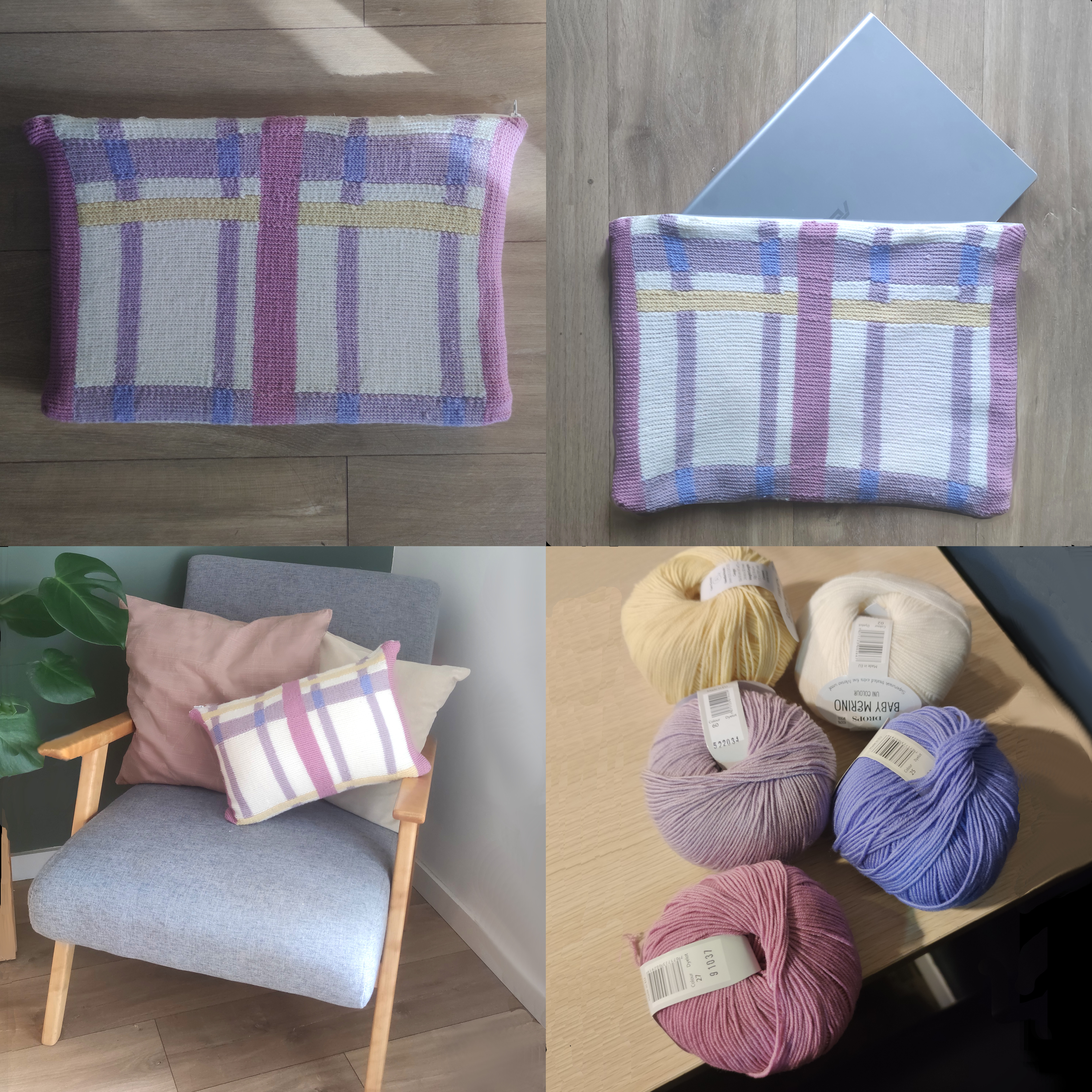 So, I invite you to join me in creating a jacquard tartan pattern that you can adapt into a cushion cover or a protective sleeve for your computer.
