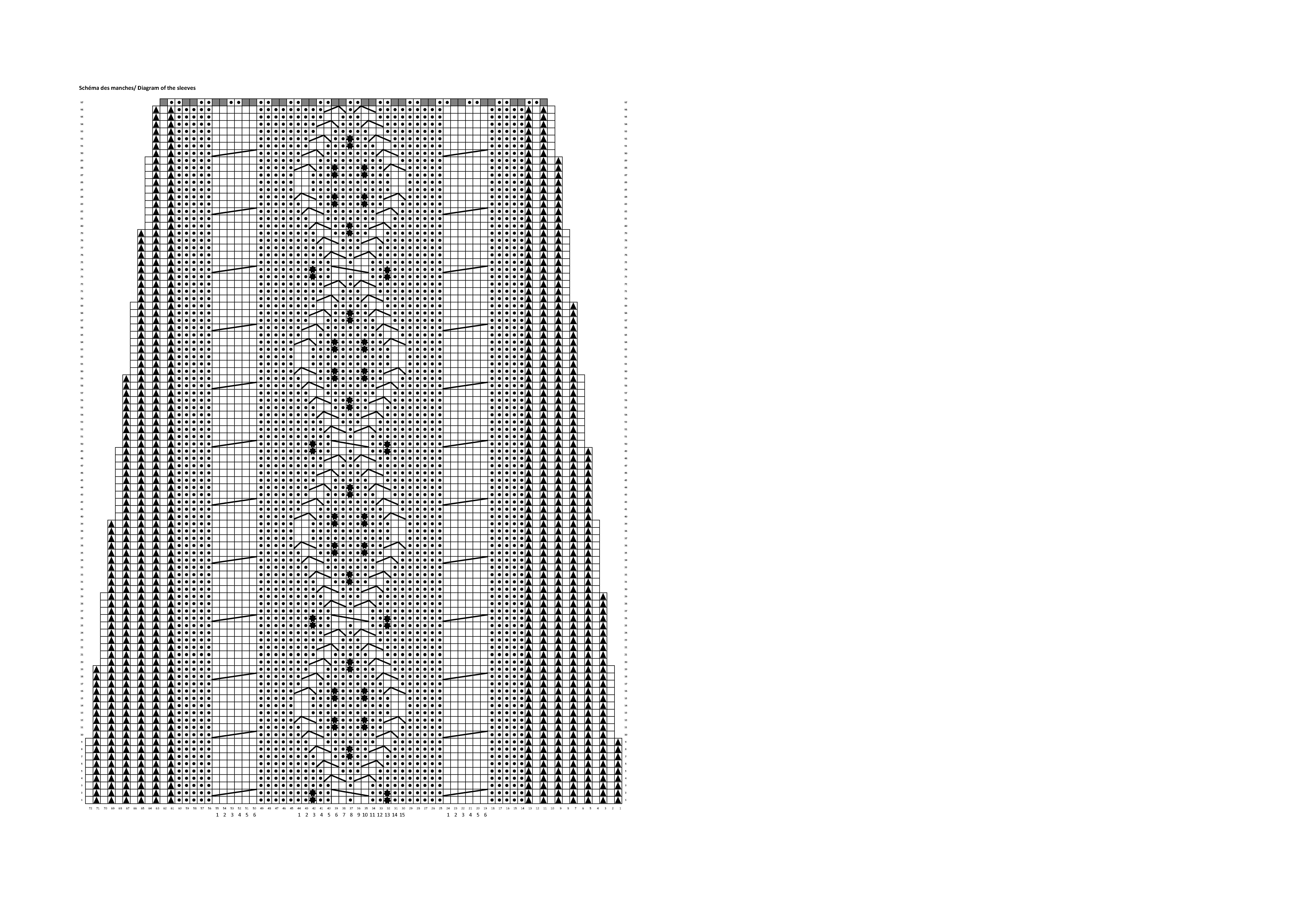- Knit according to the diagram opposite, making sure to decrease 2 stitches every 10 rows by knitting 3 stitches together.