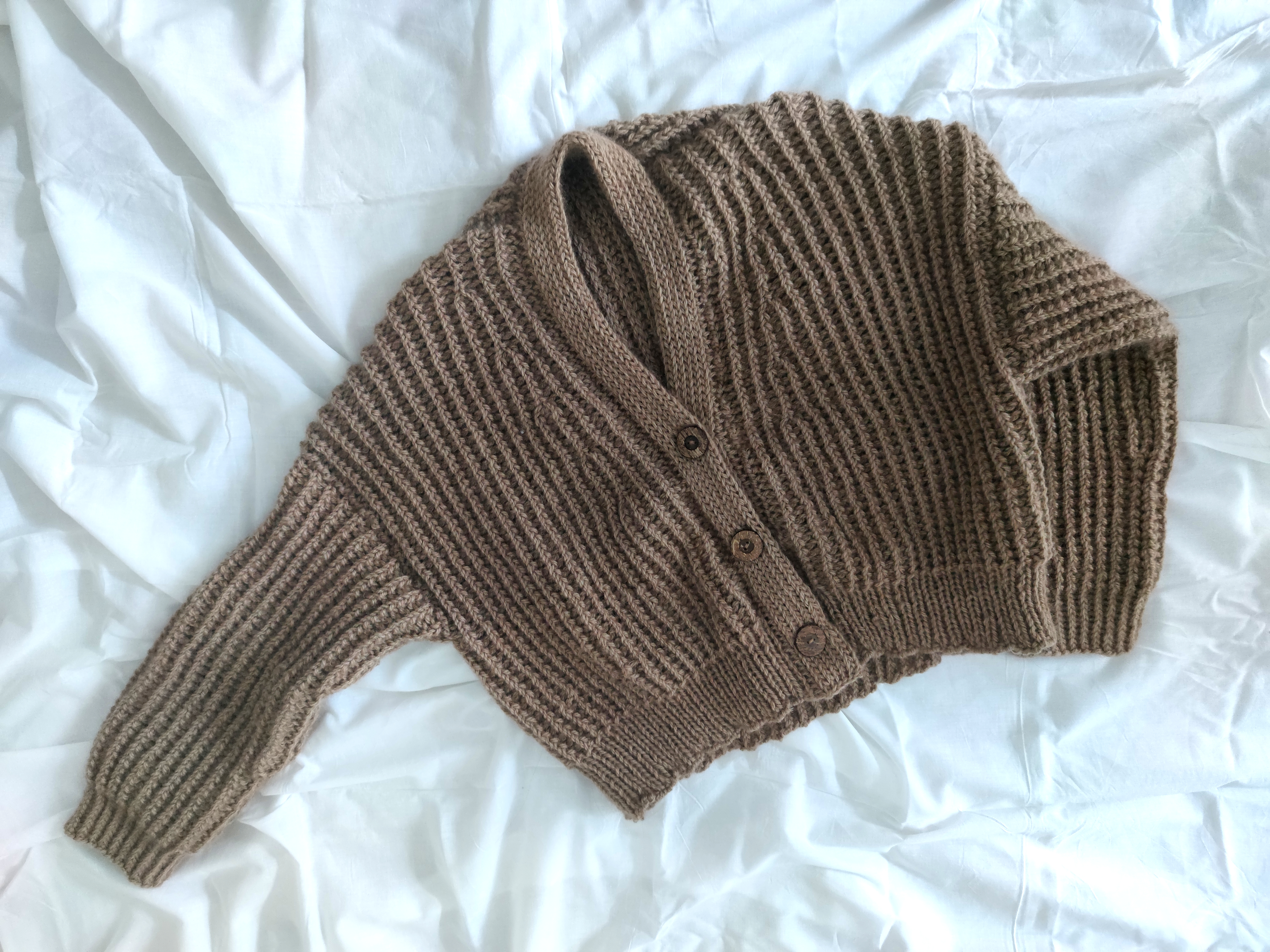 - I followed the number of stitches specified in the pattern to pick up for the button band, but it turned out a bit too short compared to the rest of the body.